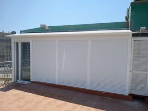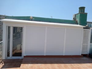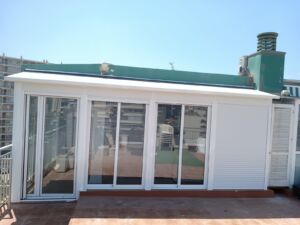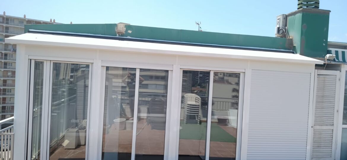 Montamos cerramientos de galerías o ampliaciones de terraza con cubiertas de techo, en aluminio, plancha sándwich térmicas o policarbonato.