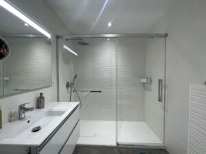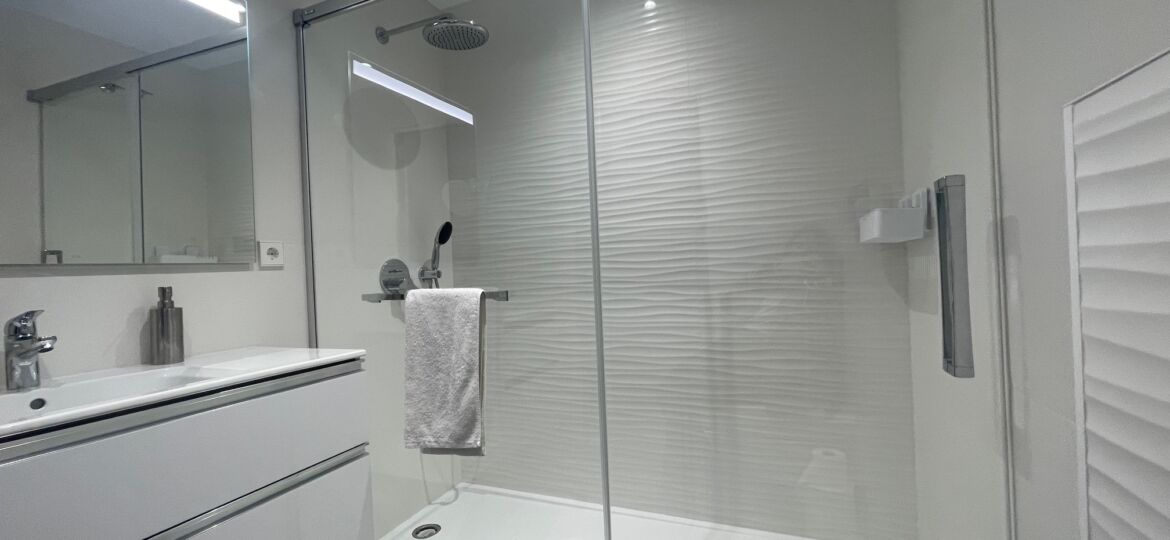 - Opta por mamparas con tratamientos antical y superficies lisas que faciliten la limpieza.