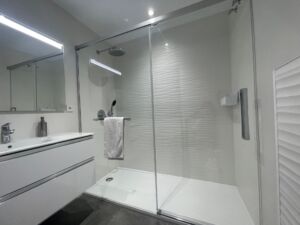 - Al integrar el toallero en la mampara, se aprovecha al máximo el espacio disponible en el baño, especialmente en aquellos de dimensiones reducidas.